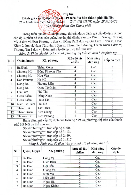 UBND thành phố Hà Nội thông báo Đánh giá cấp độ dịch trong phòng, chống dịch Covid-19 trên địa bàn Thành phố